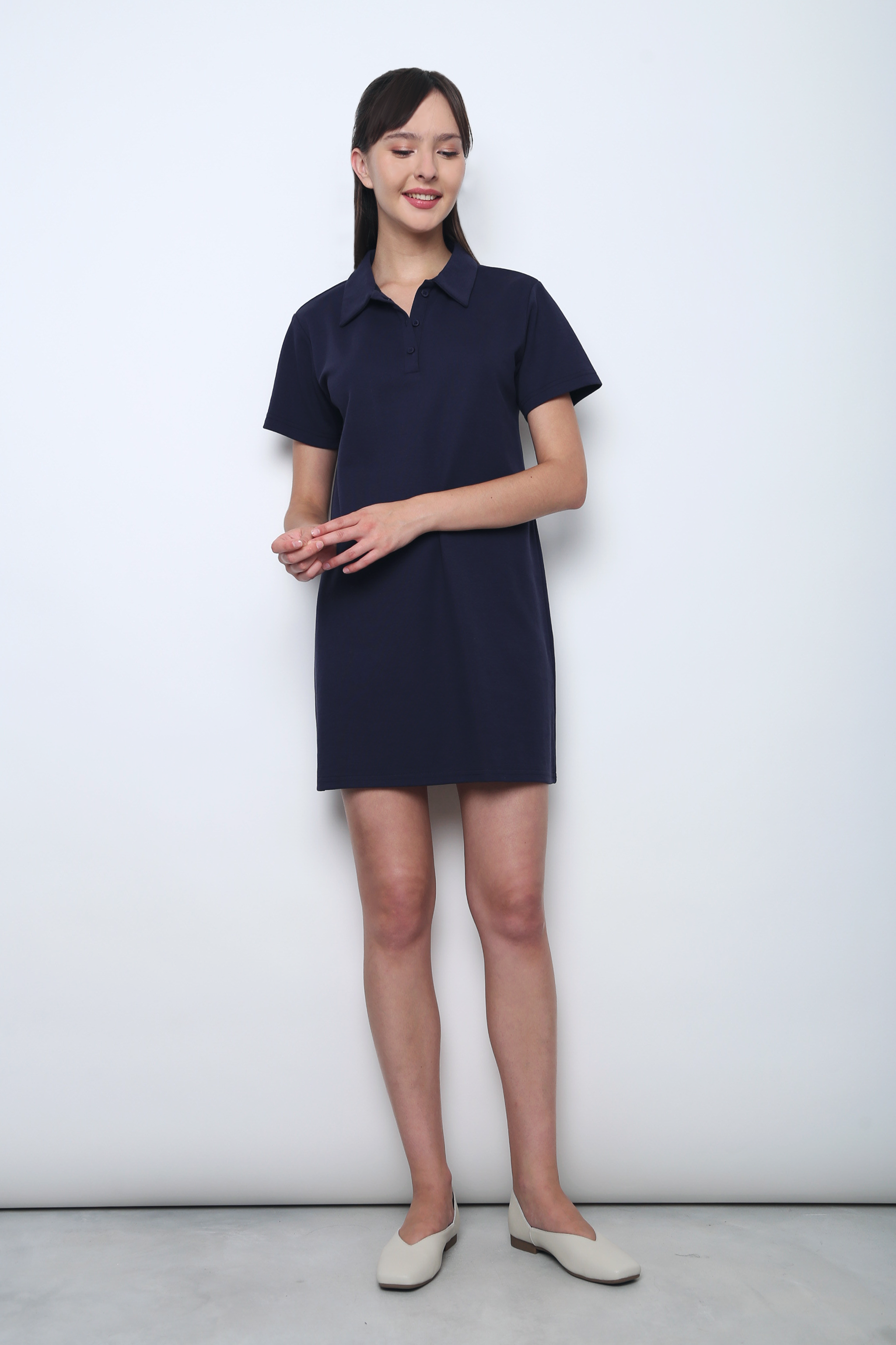 This casual polo-style mini dress combines sporty charm with everyday comfort. Designed in a flattering A-line silhouette, it’s made from soft, stretchable cotton that moves with you. Functional front buttons add a classic touch, making it an easy go-to for laid-back days or weekend errands.