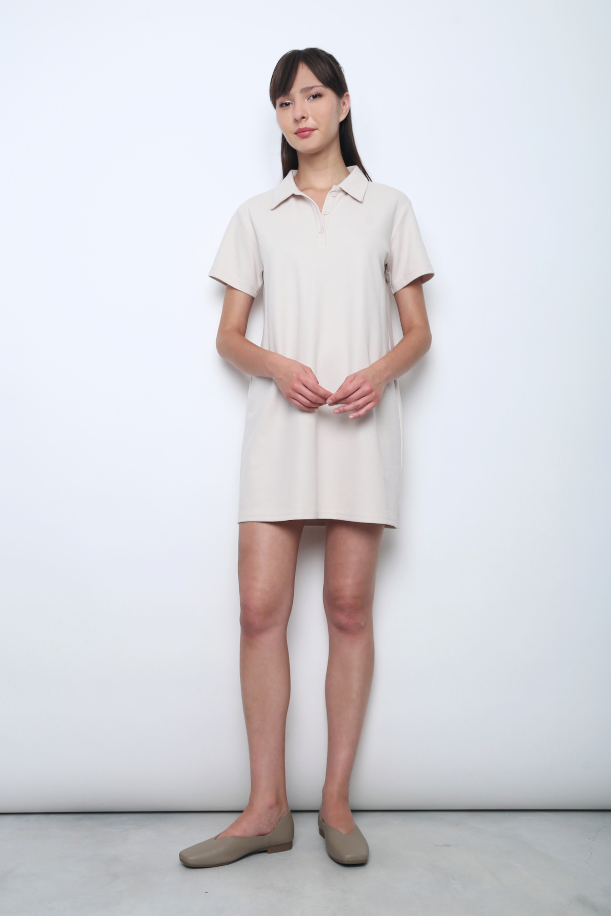 This casual polo-style mini dress combines sporty charm with everyday comfort. Designed in a flattering A-line silhouette, it’s made from soft, stretchable cotton that moves with you. Functional front buttons add a classic touch, making it an easy go-to for laid-back days or weekend errands.