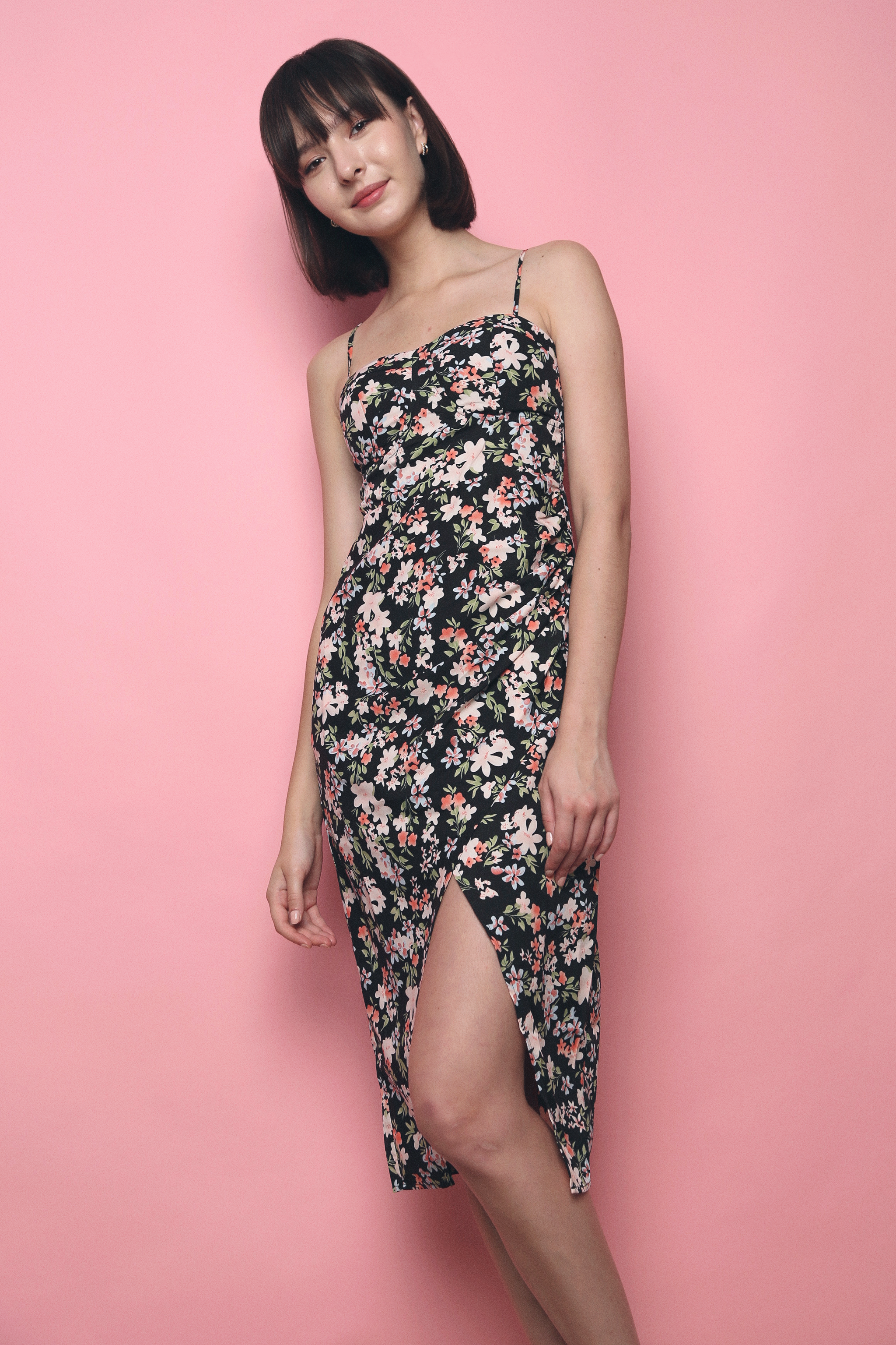 Cartel Floral Bustier Midi Dress Black