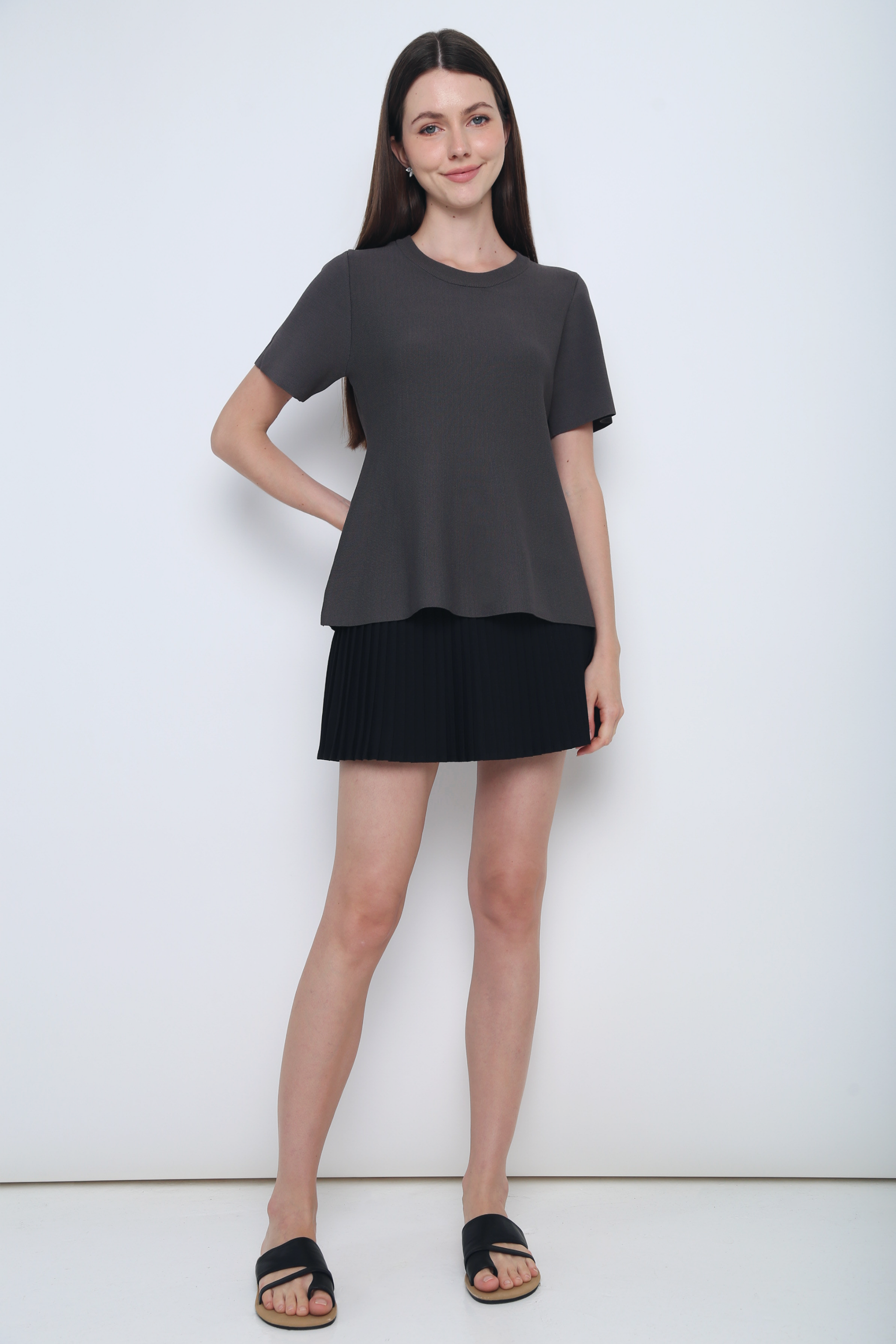 Colbie Babydoll Knit Blouse Gunmetal Grey
