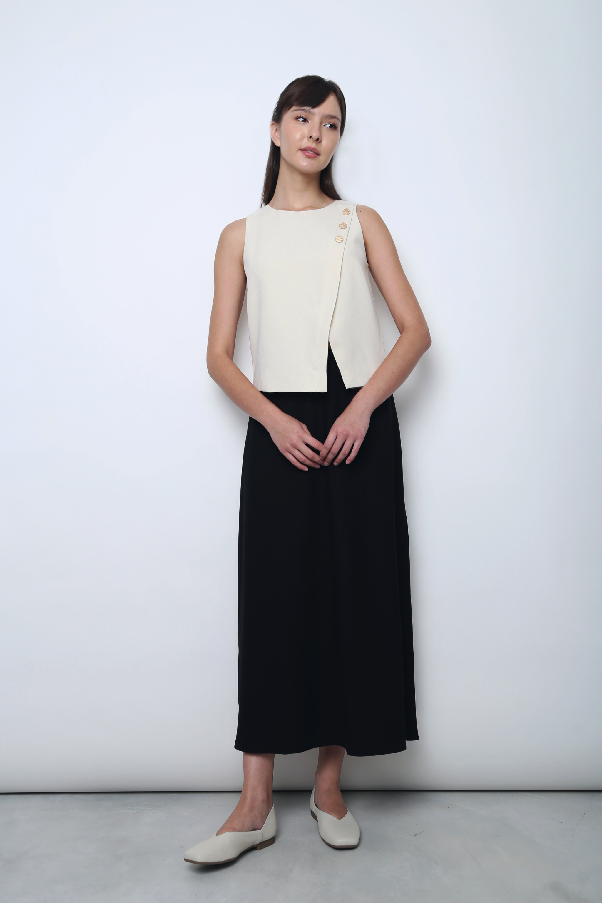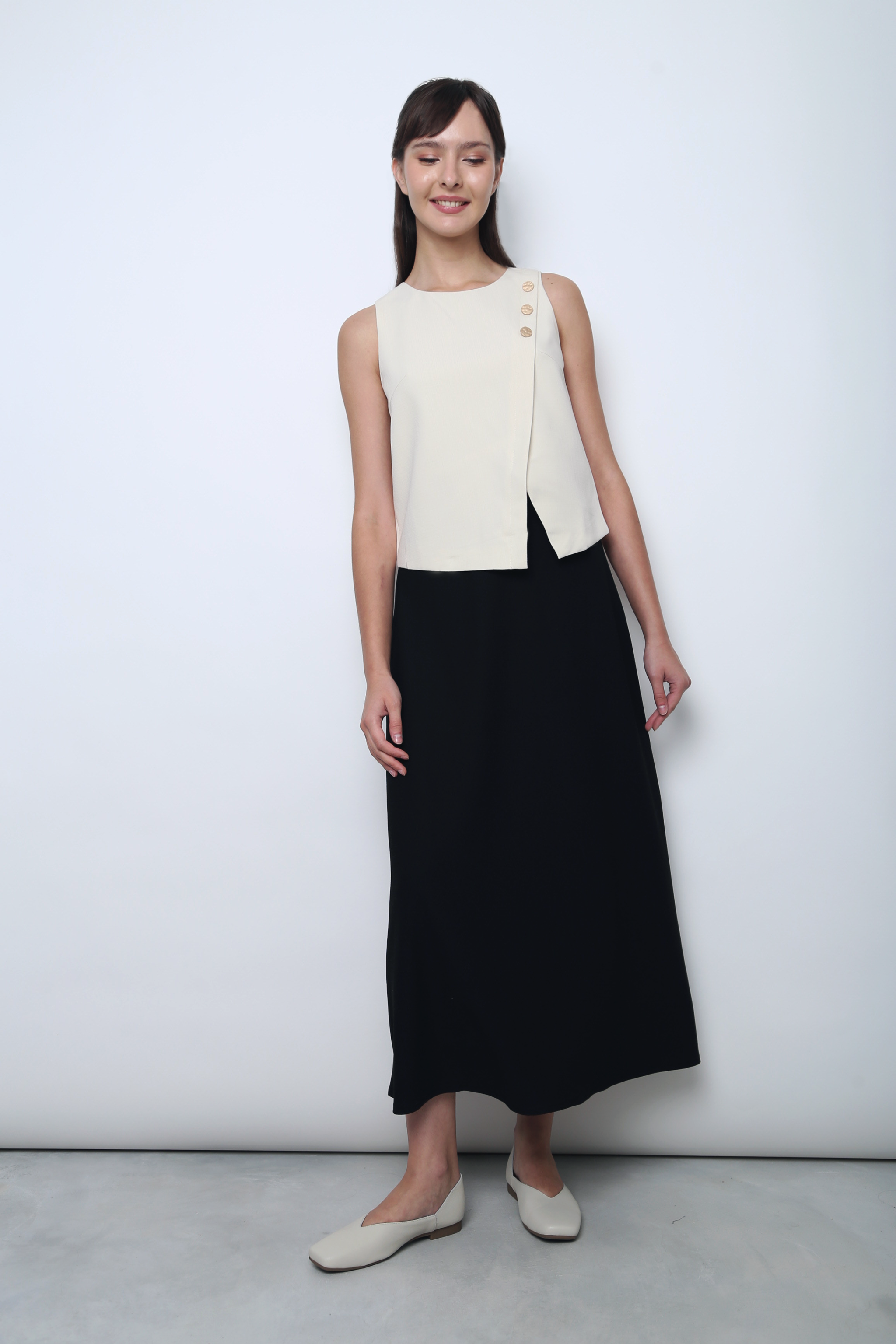 Sleek ribbed midi skirt with an elastic waistband and concealed back zipper, a versatile staple for both workdays and weekends.