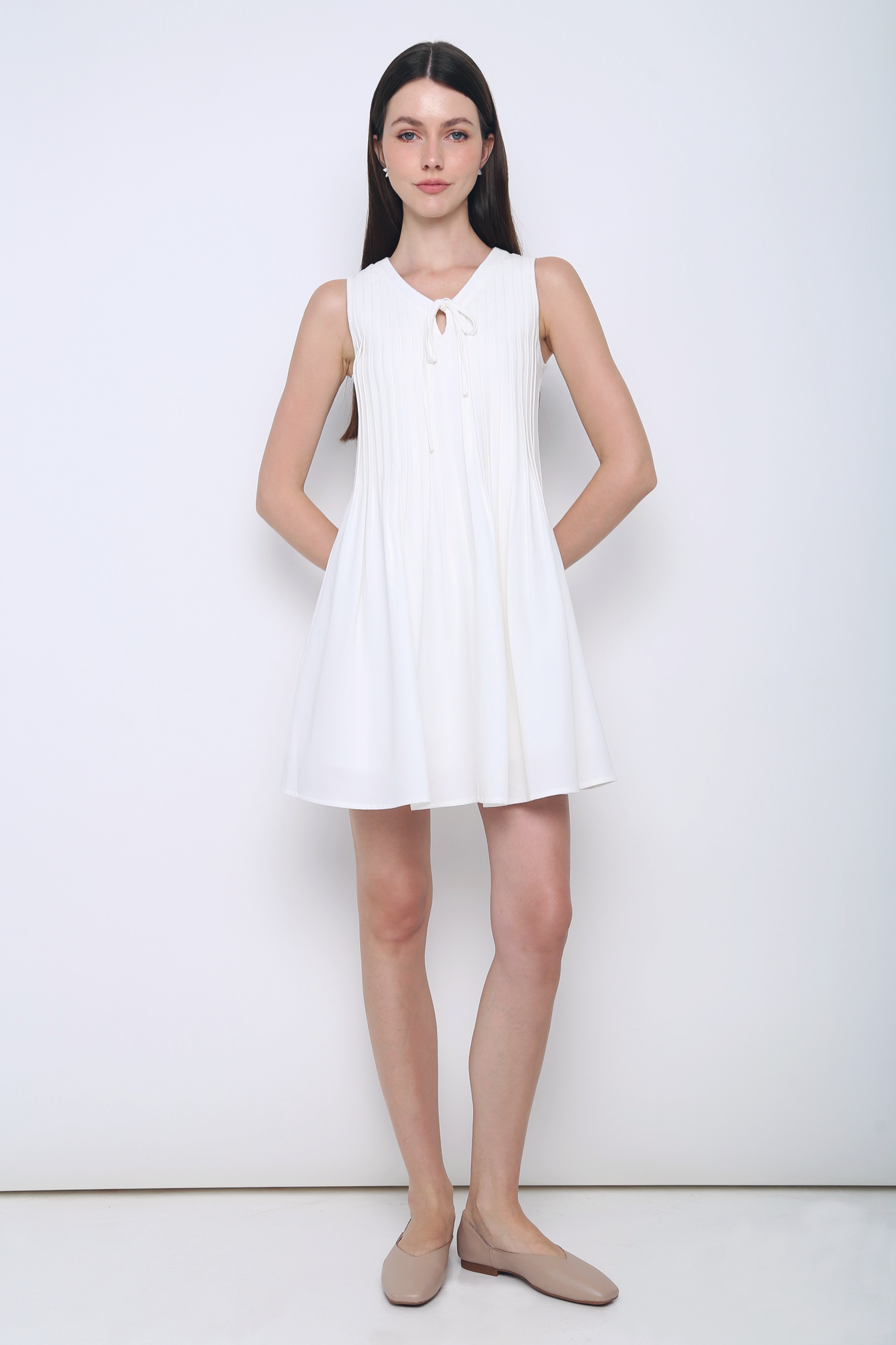 Darling Pleat Dress White (Restock)