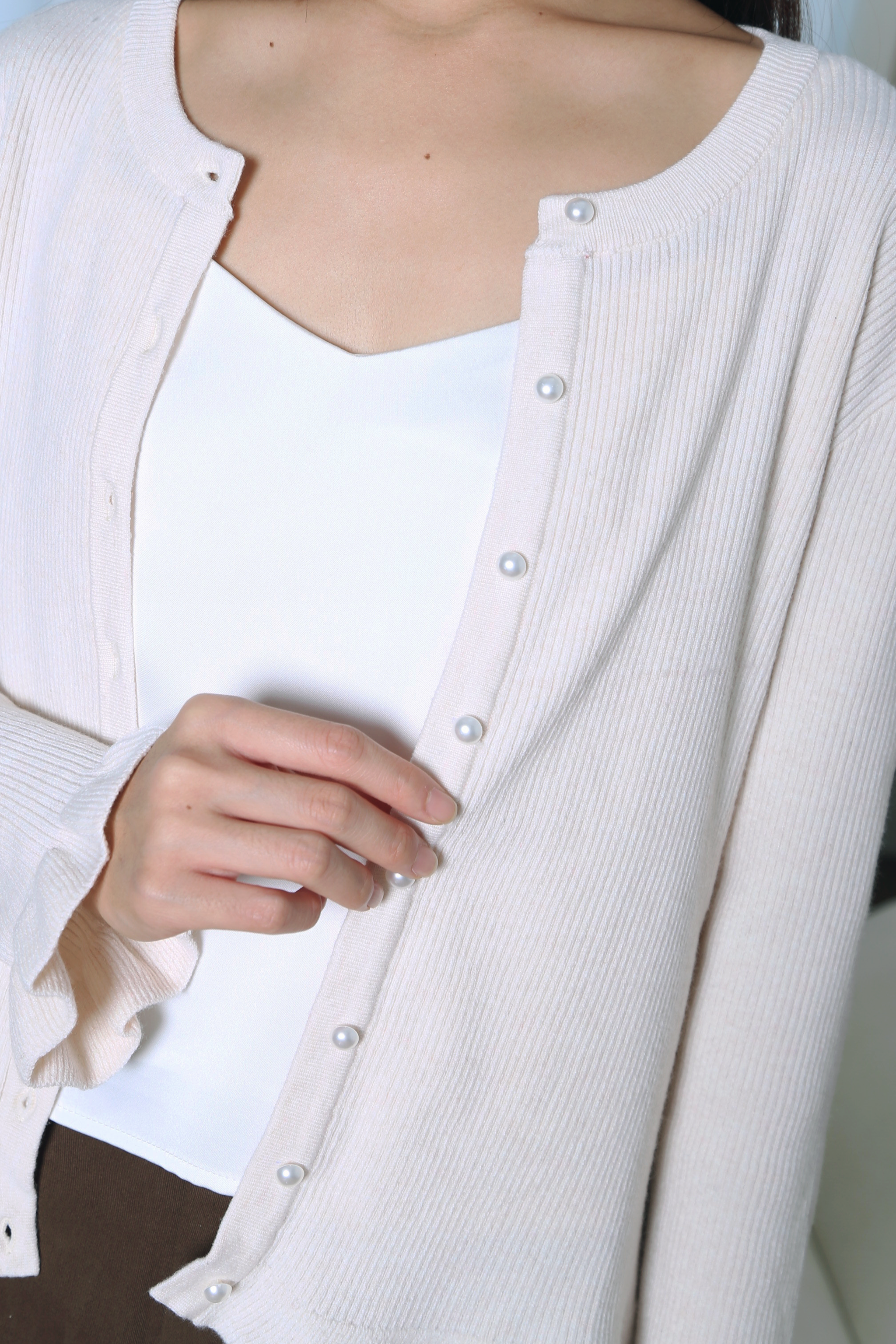 A little pearl, a little ruffle, a whole lot of charm! This cardi instantly elevates any outfit — from casual jeans to dressy fits. Perfect for layering through chilly mornings and breezy nights.