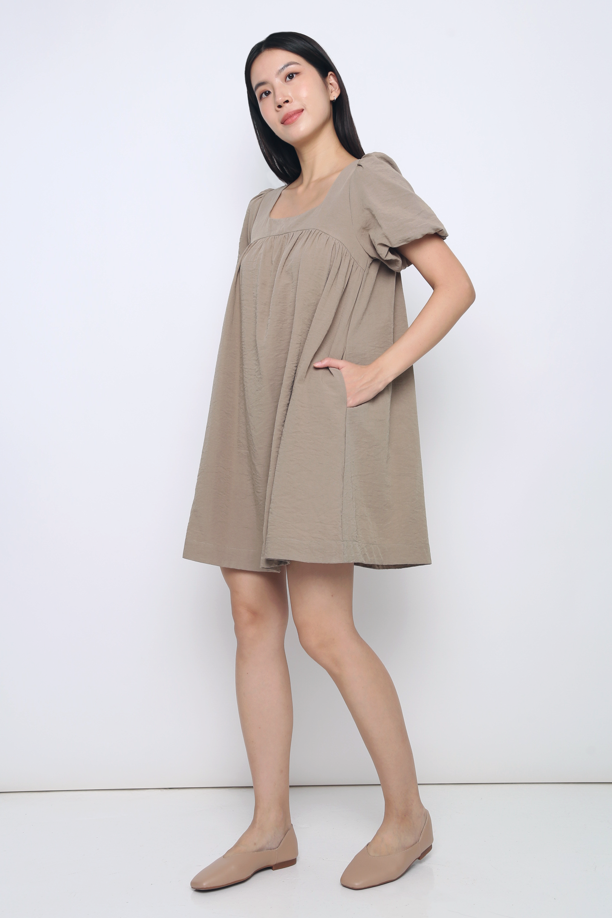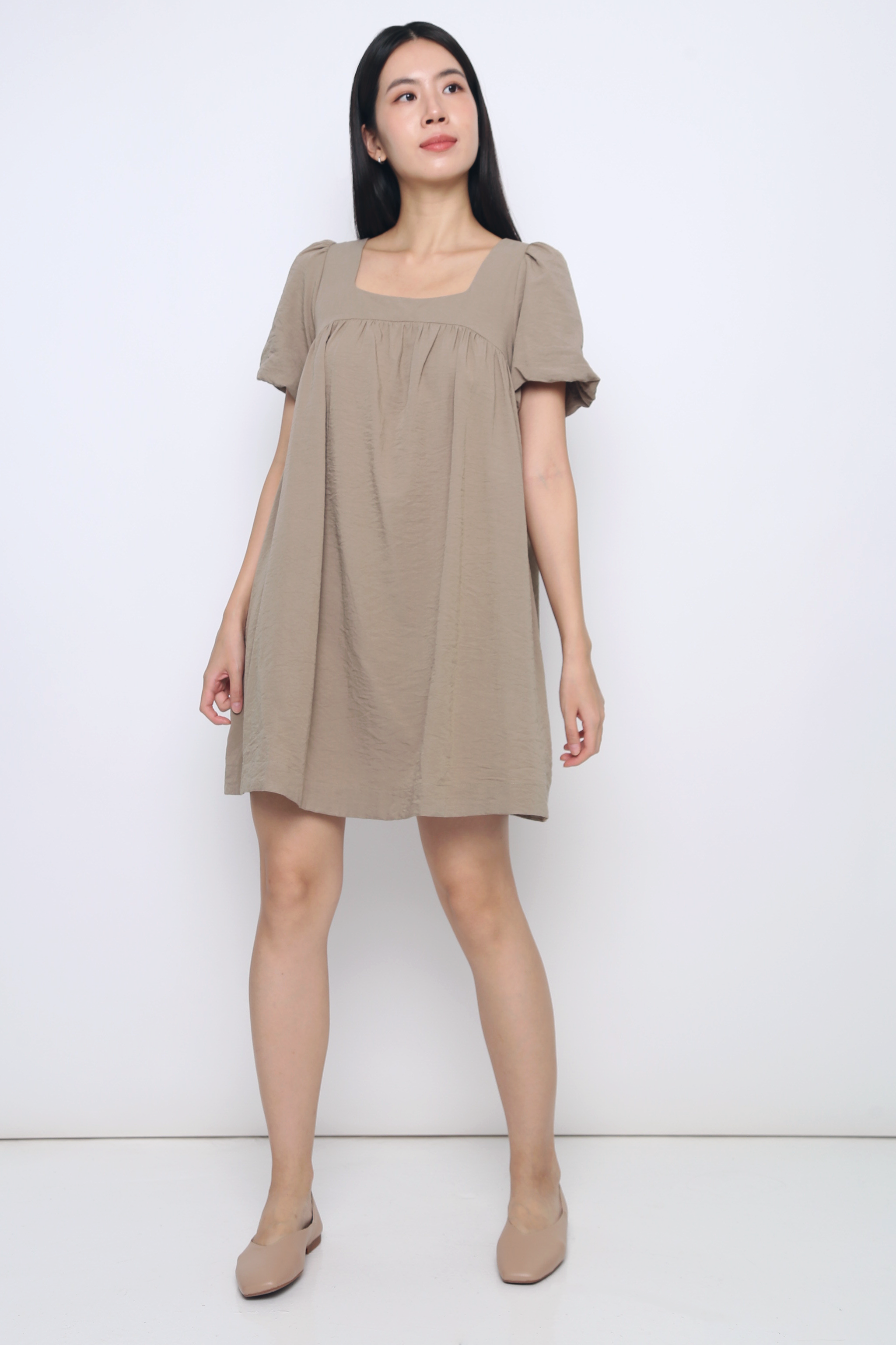 Goldie Puffed Sleeves Dress Ash Brown