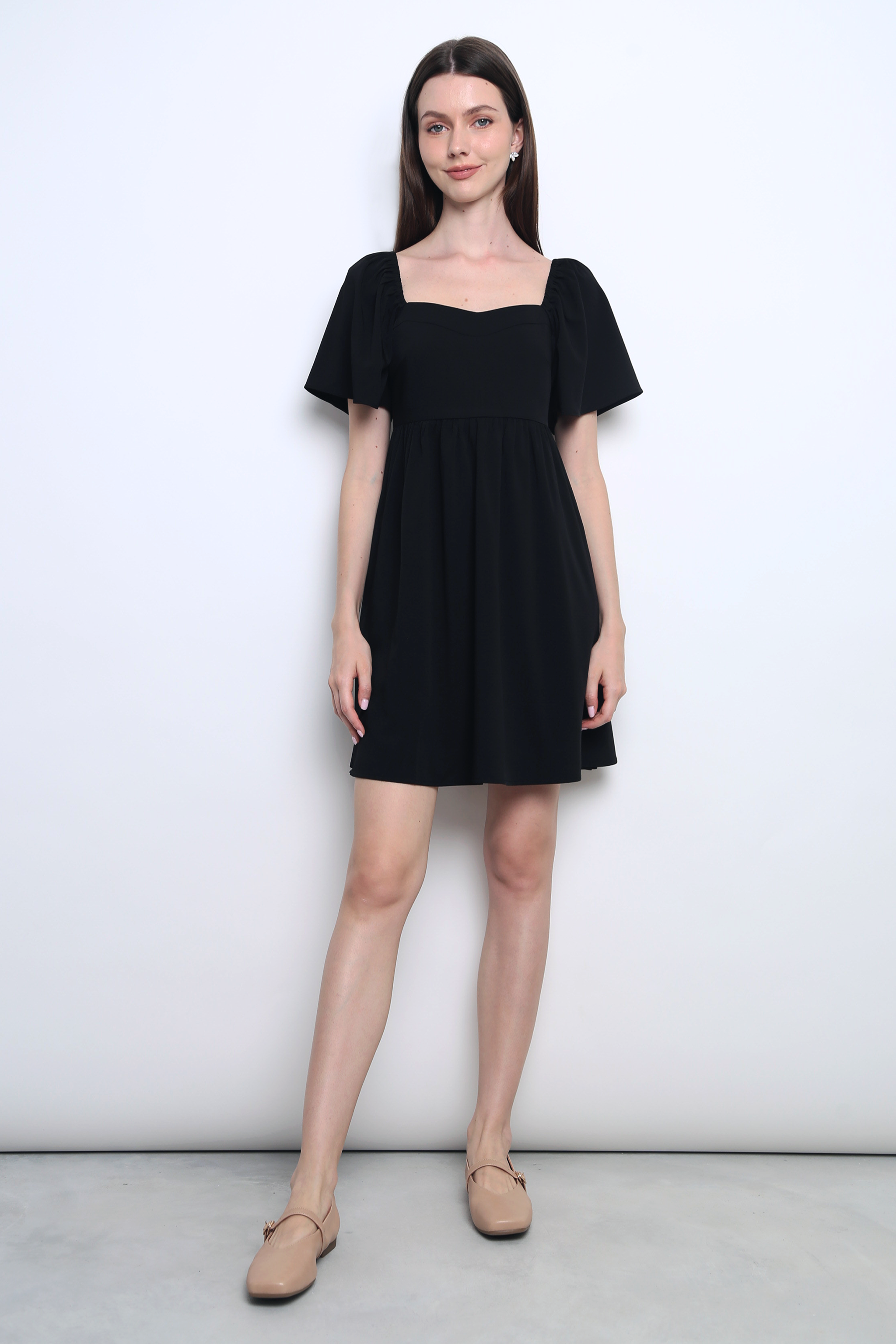 Feel the charm in every flutter. Made from a smooth polyester blend and fully lined for comfort, this dress features delicate flutter sleeves and a smocked back for a flexible, flattering fit. A concealed zipper keeps the silhouette sleek, while functional side pockets add a practical touch. Perfect for days when you want to look effortlessly feminine with a hint of playfulness.