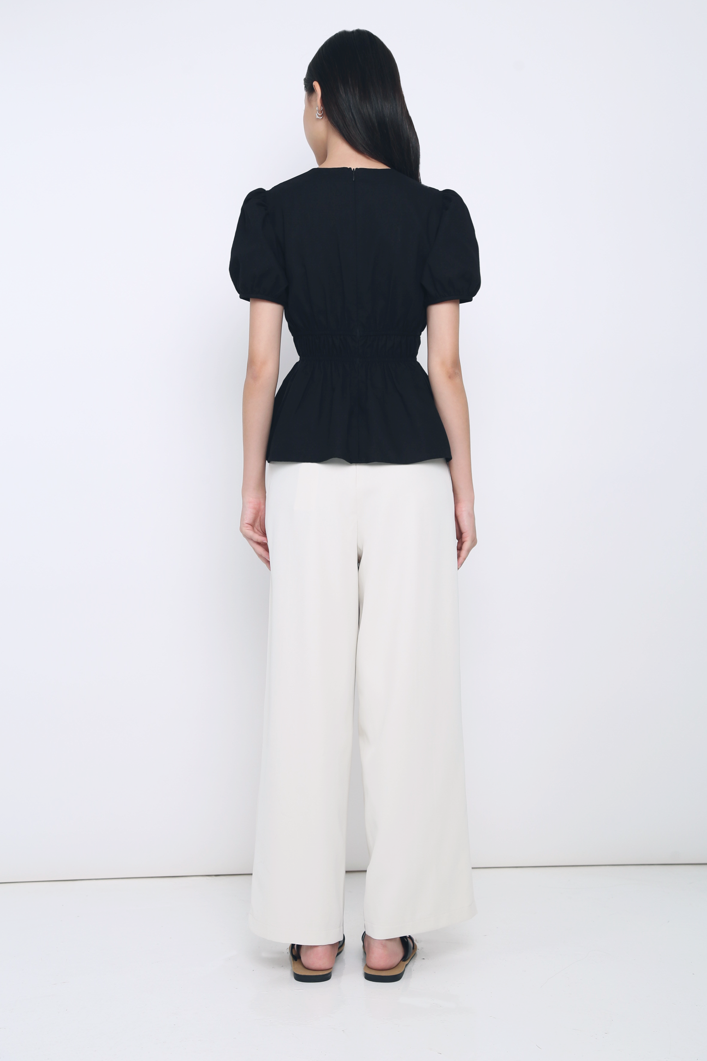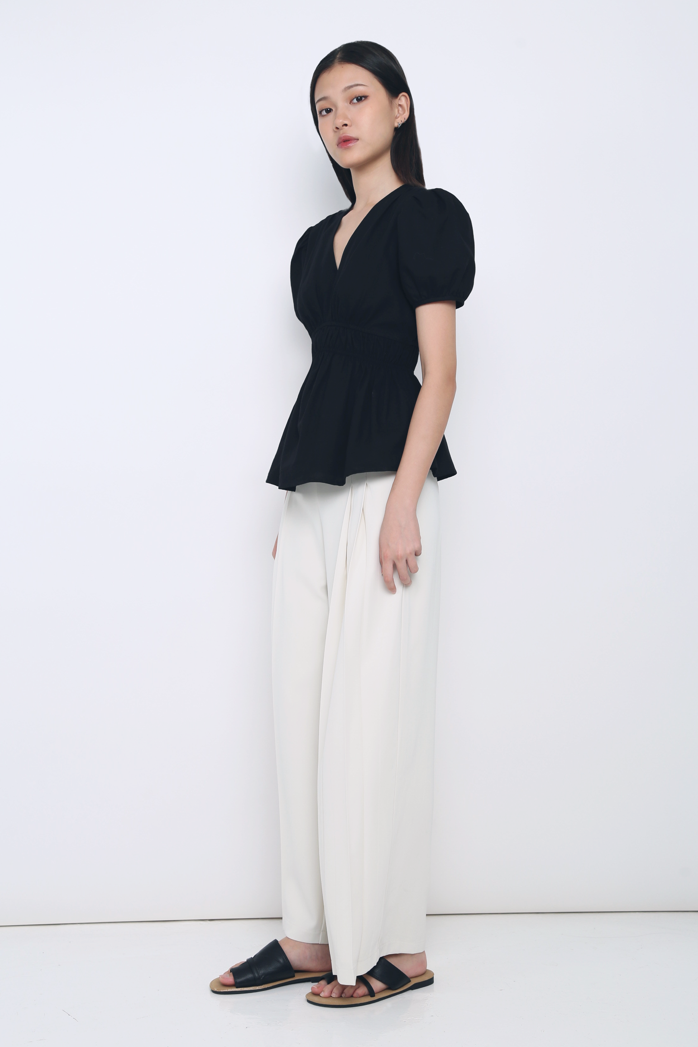 Ike V Neck Shirred Waist Blouse Black