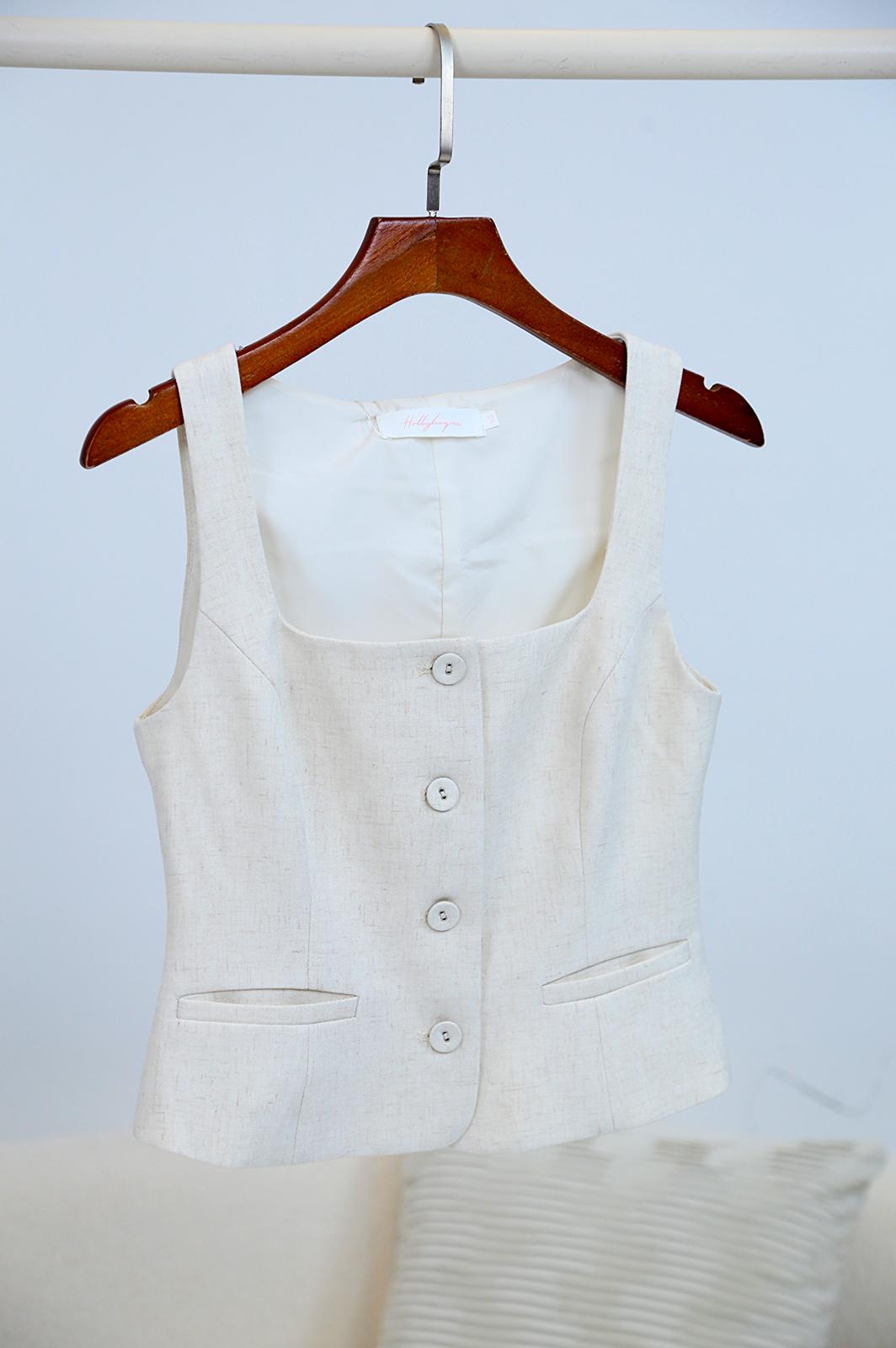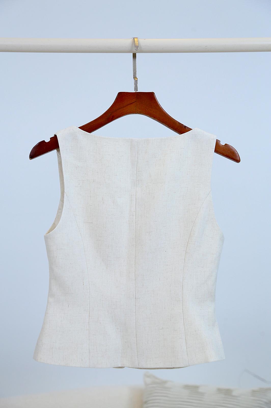 A perfect blend of sophistication and modern edge, this linen vest top features a square neckline, tailored fit, and functional front buttons. Fully lined for comfort, it's perfect for both casual and dressy looks. Wear it solo or layer it for added versatility!
