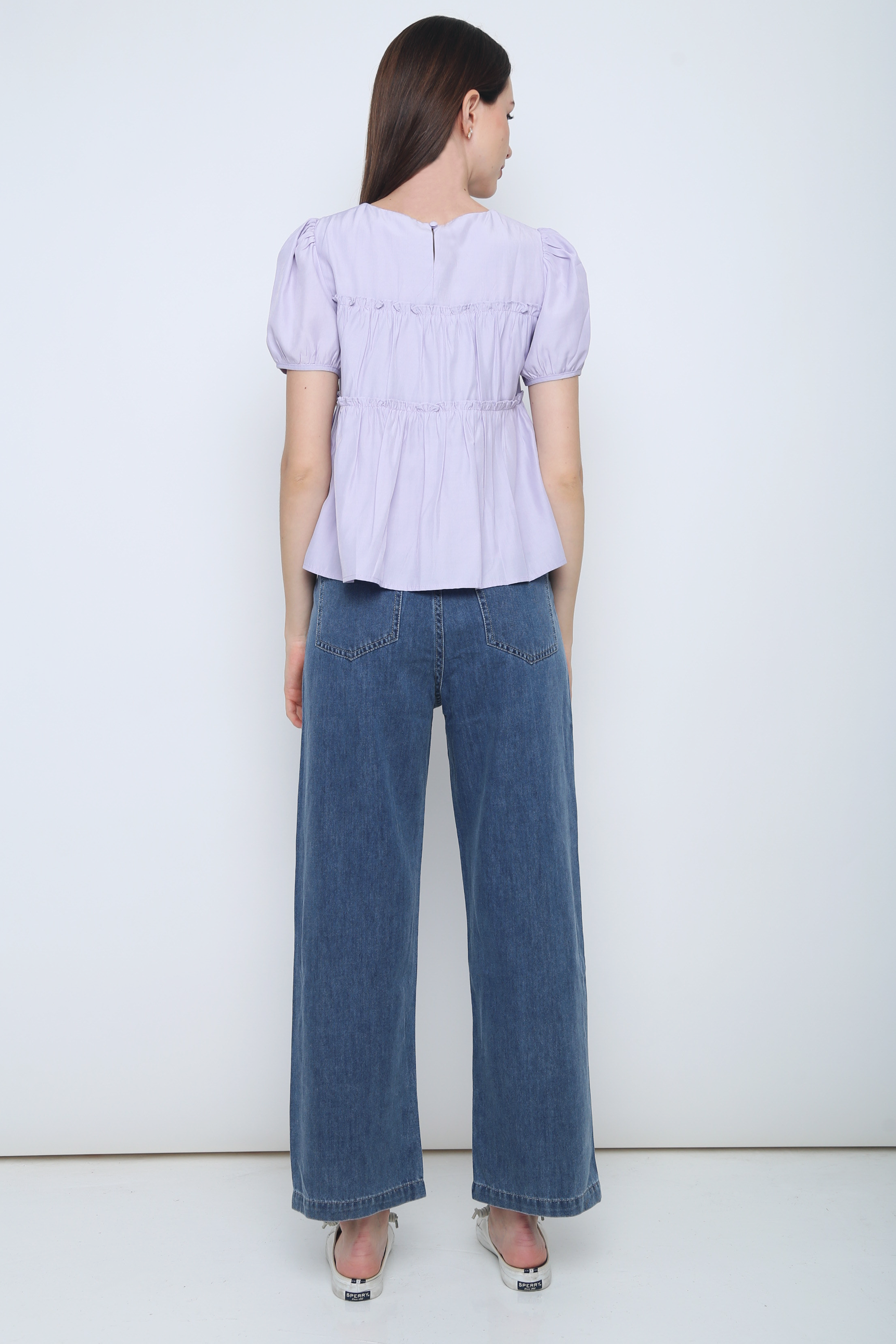 The Iva Ruffles Tier Blouse features gentle gathers and tiered panels for a breezy, voluminous shape. The puff sleeves add a romantic touch, while the relaxed fit ensures all-day comfort. Pair it with shorts or tailored bottoms for an effortlessly sweet look.