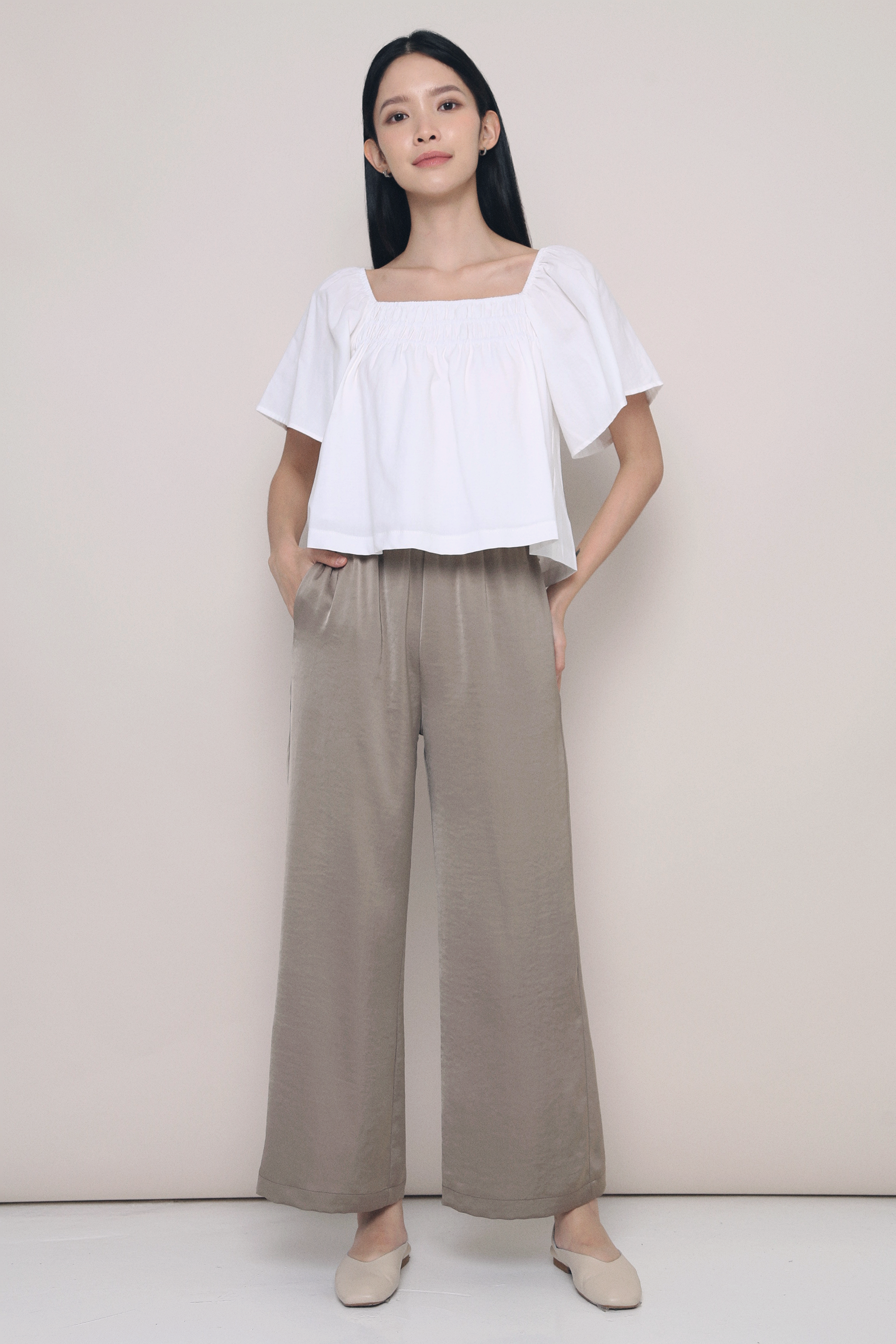 The Jael Flutter Sleeves Top is a graceful and feminine piece featuring flutter sleeves that gently drape and move with your every gesture. The flutter sleeves add a delicate touch, while the versatile style ensures it can be paired effortlessly with skirts, trousers, or jeans for a chic look.