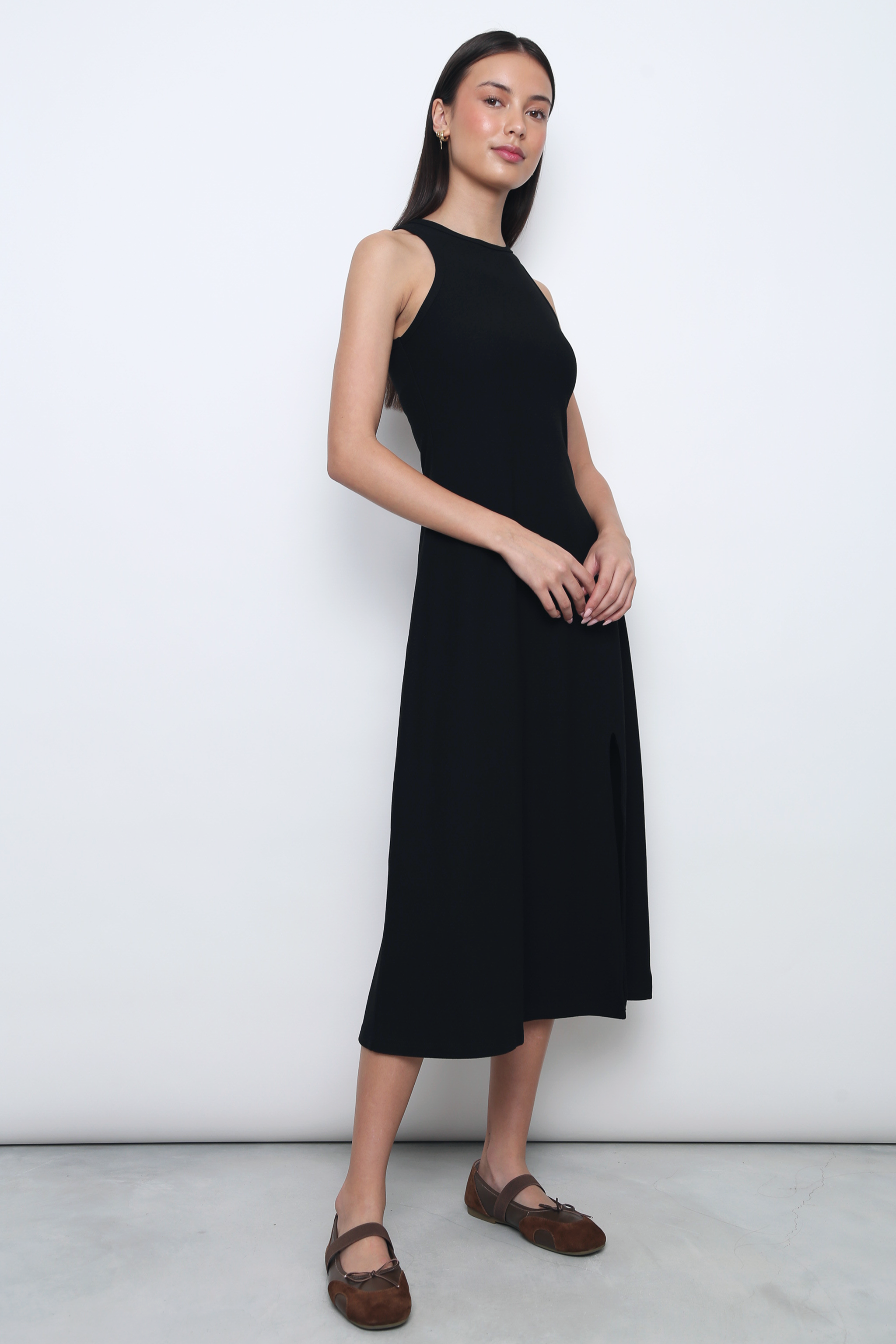 Nova Racer Slit Midi Dress Black