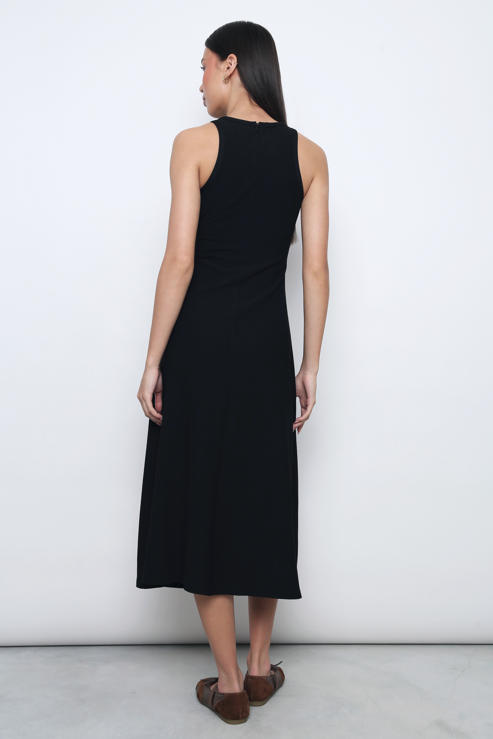 Made from thick ribbed cotton for a structured yet comfortable fit, this midi dress features a sleek concealed back zipper and a subtle racer slit for effortless movement. Timeless and versatile, it’s perfect for dressing up or keeping it casual, making it a staple you’ll reach for again and again.