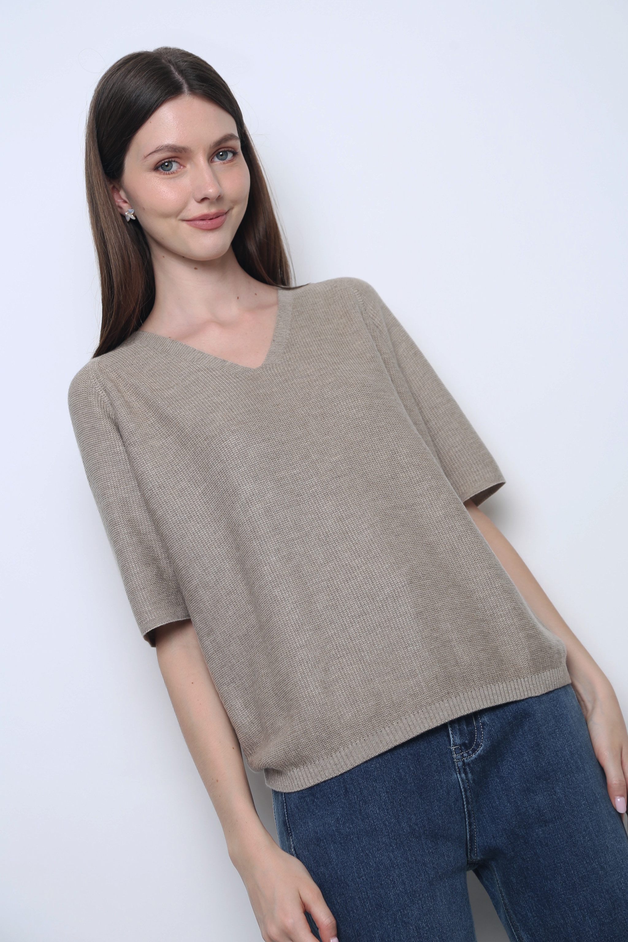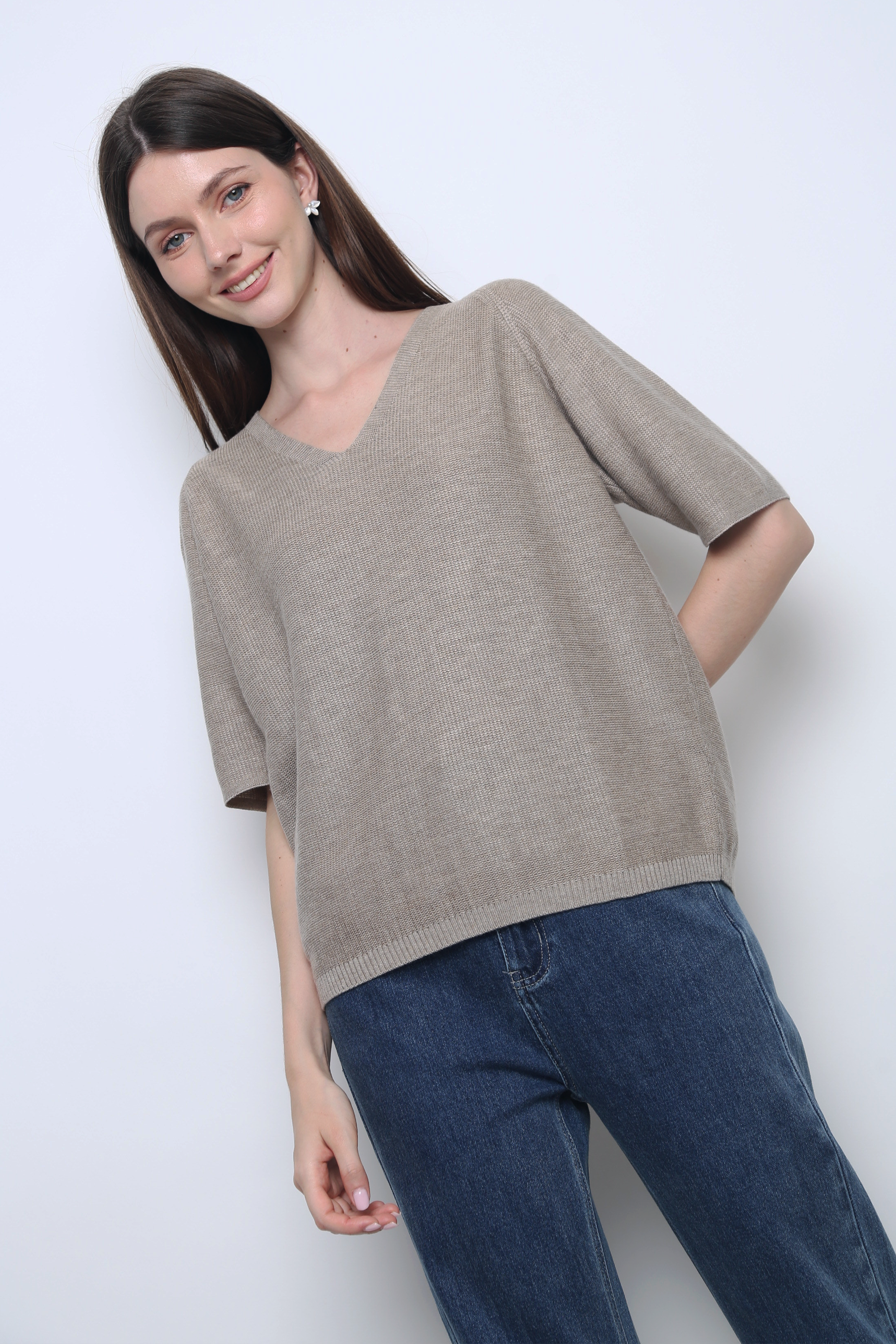 Seychelles Scallop Knit Blouse Taupe (Restock)