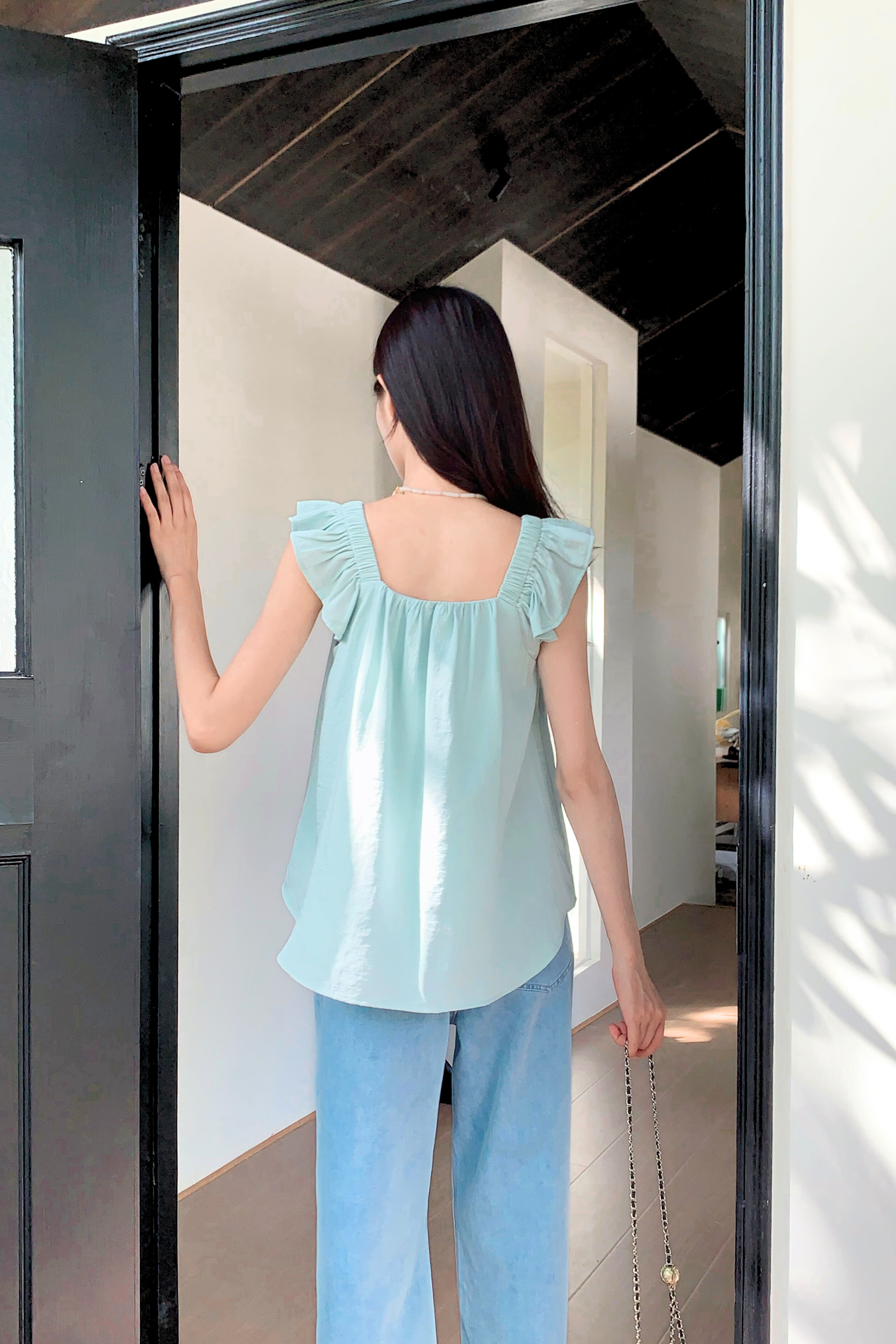 This breezy top features delicate elasticized straps for a secure, flattering fit. Its lightweight fabric and effortless flutter design make it the perfect choice for sun-soaked days and warm evenings by the water.