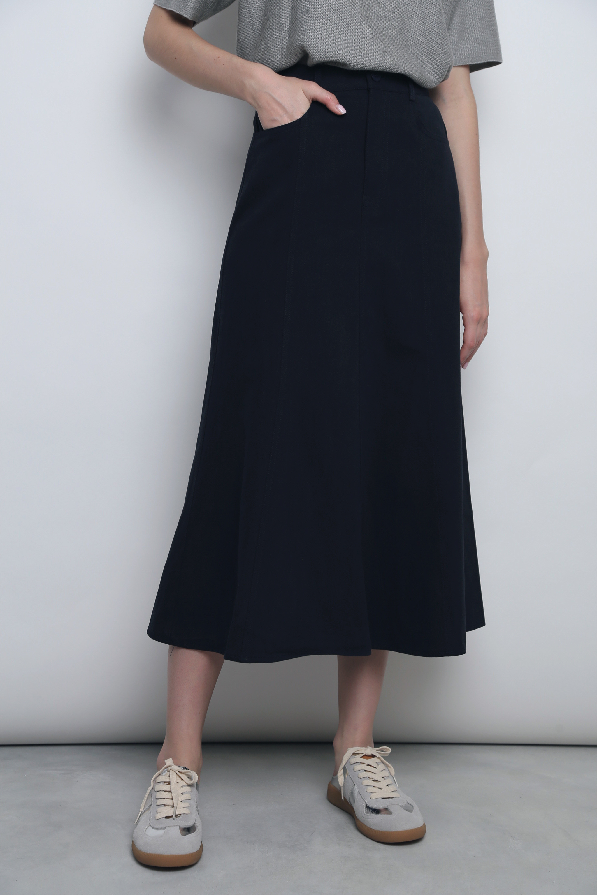 Valmont Fishtail Flare Skirt Navy