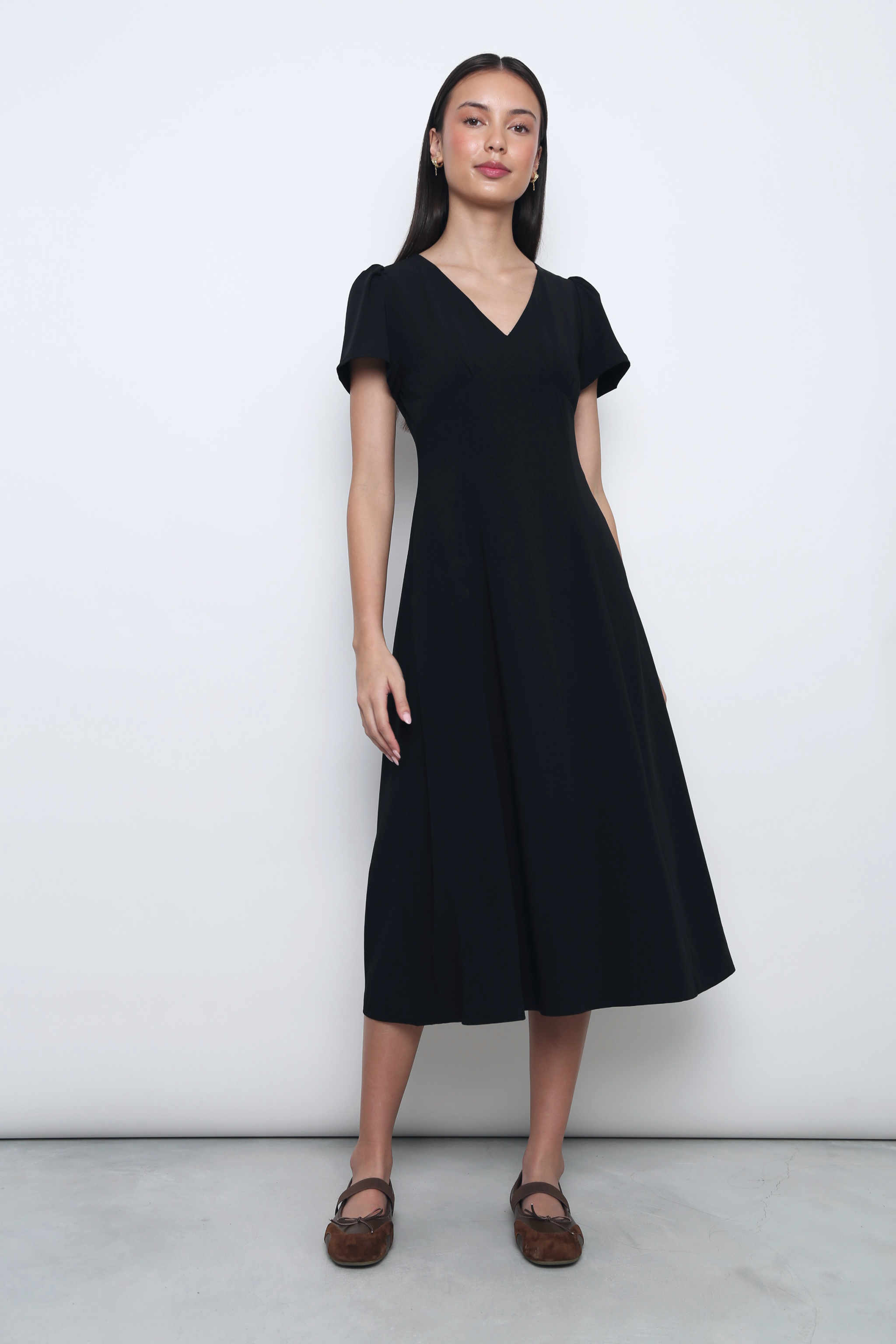 Venezia Fit Flare Midi Dress Black (Backorder)