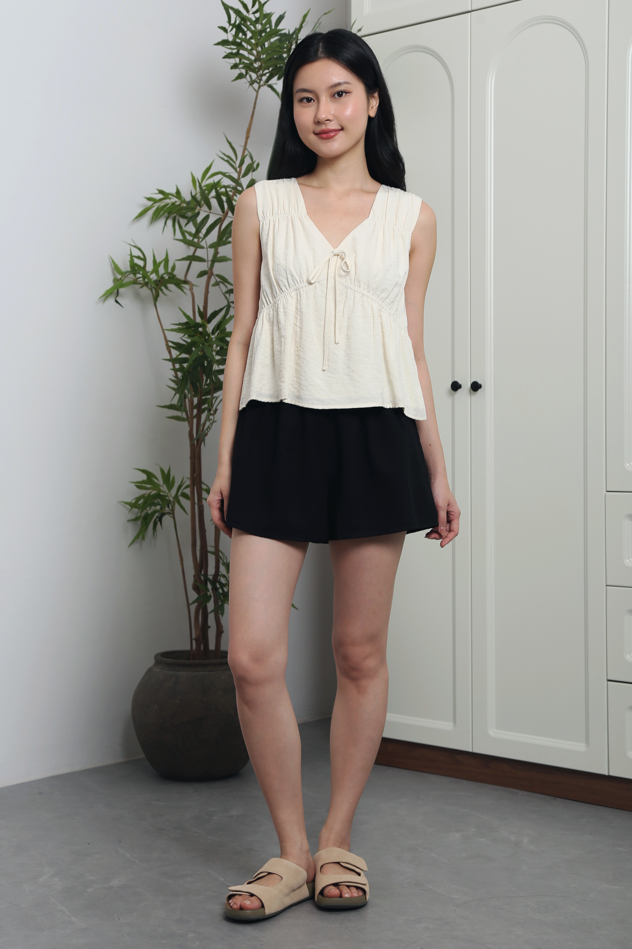 Easy, comfortable, and endlessly versatile. These black shorts feature a stretchy elastic waistband for a flattering and flexible fit, with soft pleating that adds subtle volume and movement. Designed in a lightweight fabric, they’re perfect for everyday wear—whether styled casually with a tee or dressed up with a blouse.